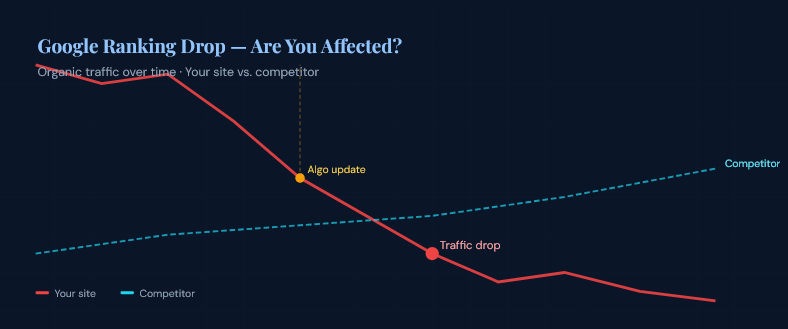 Google makes thousands of small tweaks to its search algorithm each year, and several major “core updates” that can shake entire industries overnight. If your traffic dropped suddenly, the very first thing to check is whether a Google algorithm update coincided with that date.